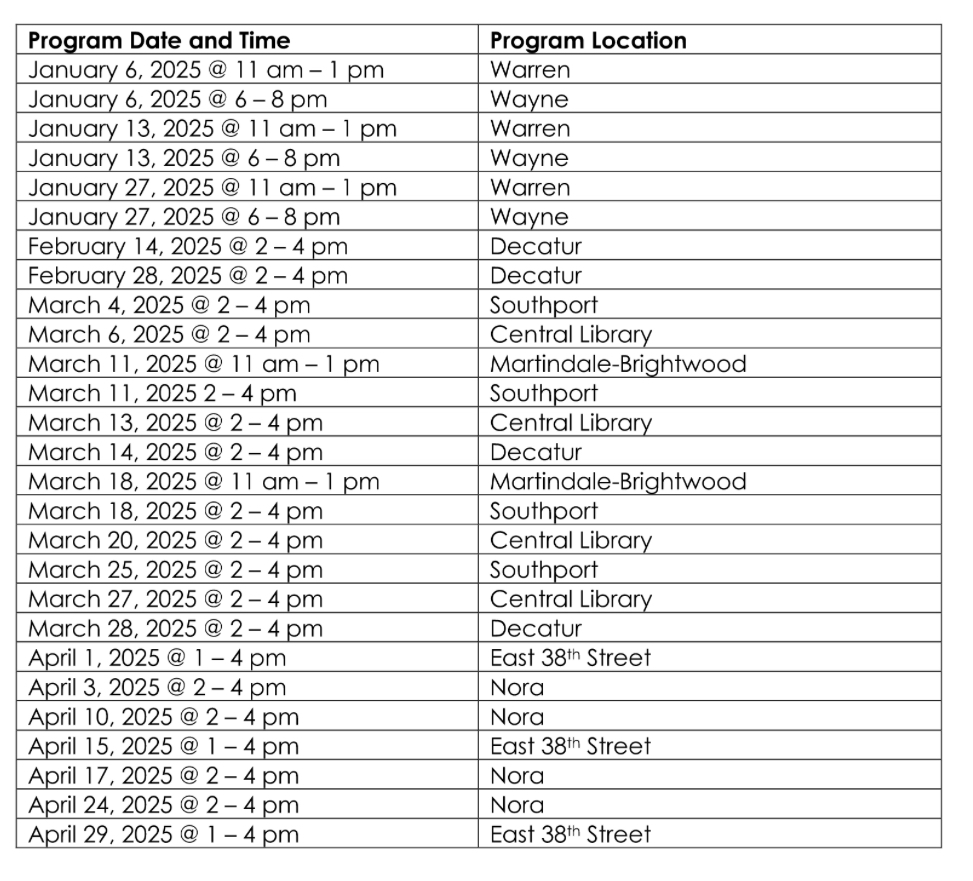 The Village Schedule for Indianapolis Public Libraries