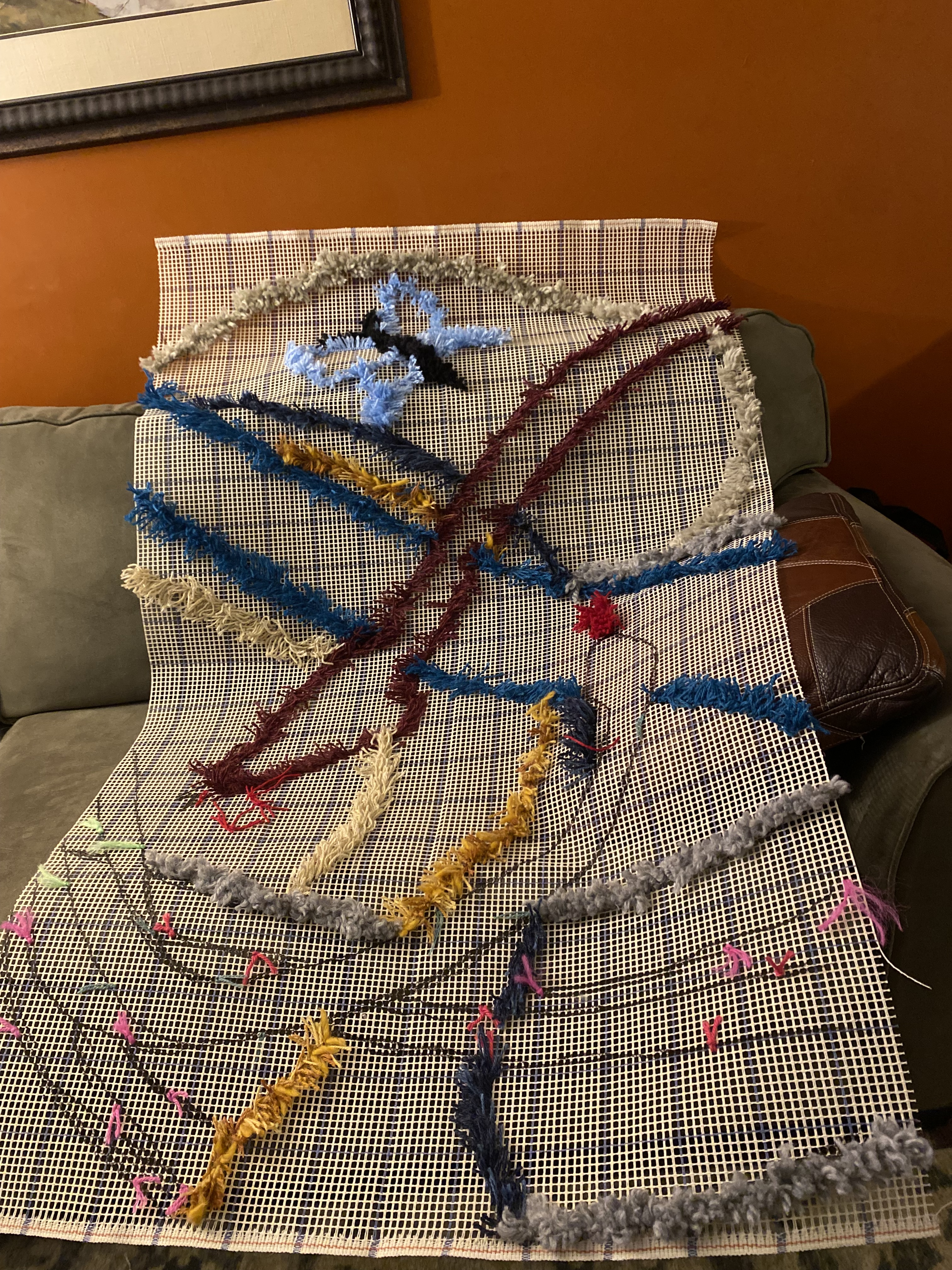 A project of this size really needs to be done in parts. People who enjoy different processes should focus on the aspects they like. I really don’t like the latch hook process! I love design, making pompoms, and interacting with lots of different people. I also love knitting and will include knit flowers in the composition. I don’t like crochet, but have friends who do. They will crochet flowers.