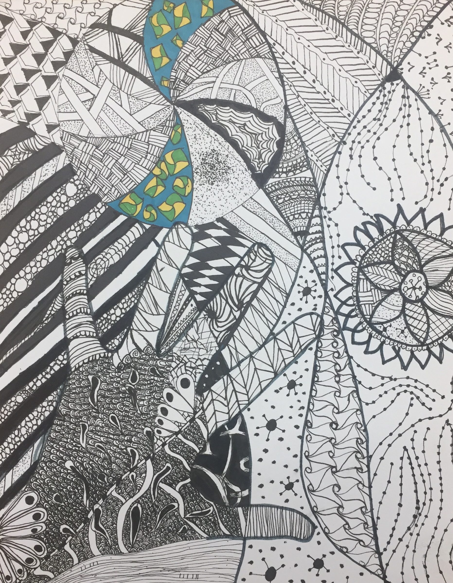 From 2012-19 I taught art to 7-12 grade students. We had a lot of fun in the Art Room listening to music and creating great projects inspired by graffiti. We did community projects for our school, fundraisers, and also coloring sheets when everyone needed to unwind a little bit. Many students didn’t have much confidence in their abilities, but when we took pictures of simple drawings and used Adobe Capture to create patterns, they began to see creative possibilities in unexpected places. This activity gave them confidence to create their own coloring sheets using outlines of their hands and invented patterns.